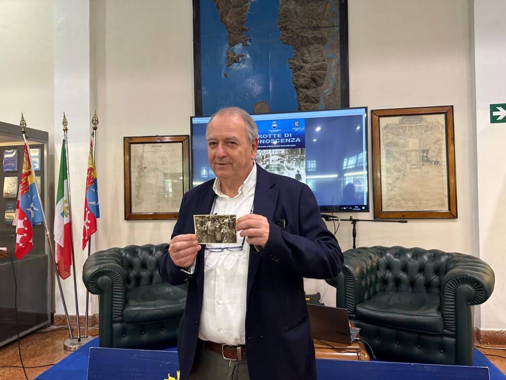 Battiti continui, provenienti dal più profondo blu e dalle persone sedute in sala, hanno scandito l’incontro con Patrizia Maiorca, il settimo appuntamento del ciclo “Rotte di conoscenza” per celebrare il centenario del Museo Tecnico Navale della Spezia, a cui partecipano autorità, forze armate, stampa, amministrazione comunale, la classe terza sezione C del Liceo Pacinotti. A dieci anni dalla scomparsa del padre Enzo, Patrizia Maiorca ha condiviso e rinnovato attraverso filmati storici e aneddoti privati l’emozione di scoprire, amare e vivere la vita assieme al Grande Fratello Blu, il mare. Con un regalo inaspettato: la visione del video del record mondiale del padre del 1973, venti minuti di impresa vissuta nel Golfo della Spezia. E, sorpresa nella sorpresa, tra il pubblico ci sono i testimoni di quella giornata. “Ero una bambina di otto anni. Non ricordo il momento ma a Porto Venere c’era grande attesa, e dopo ne parlarono per anni. I miei genitori cominciarono a far immersioni in seguito alla venuta di Maiorca, ci fece appassionare”, commenta una portovenerese doc. “Io ho conservato gli articoli di quotidiano di quel giorno”, dice un altro. “Ma ti ricordi quando si scontrò con quello di Rischiatutto?”. Più di uno sportivo, una figura nazionalpopolare, che incrocia le rotte di costume, tecnologia, ecologia, marineria, storia internazionale e locale. Giuseppe Rudisi, rinomato animatore culturale, ha ritrovato addirittura la foto di quel giorno. C’è Enzo Maiorca in tuta G.S. Maiorca, circondato da bambini. “Io sono il moretto dietro la sua spalla destra – spiega Rudisi – avevo 15 anni e frequentavo lo scientifico. Avevo amici a Fossamastra, dove faceva base l’impresa. Fu un evento seguitissimo, una cosa pionieristica. Partii in barca con amici, andammo al largo del Tino. Non ricordo l’impressione ma ho viva nella memoria la festa di quel trionfo. Fu una cosa spontanea, appassionante”.