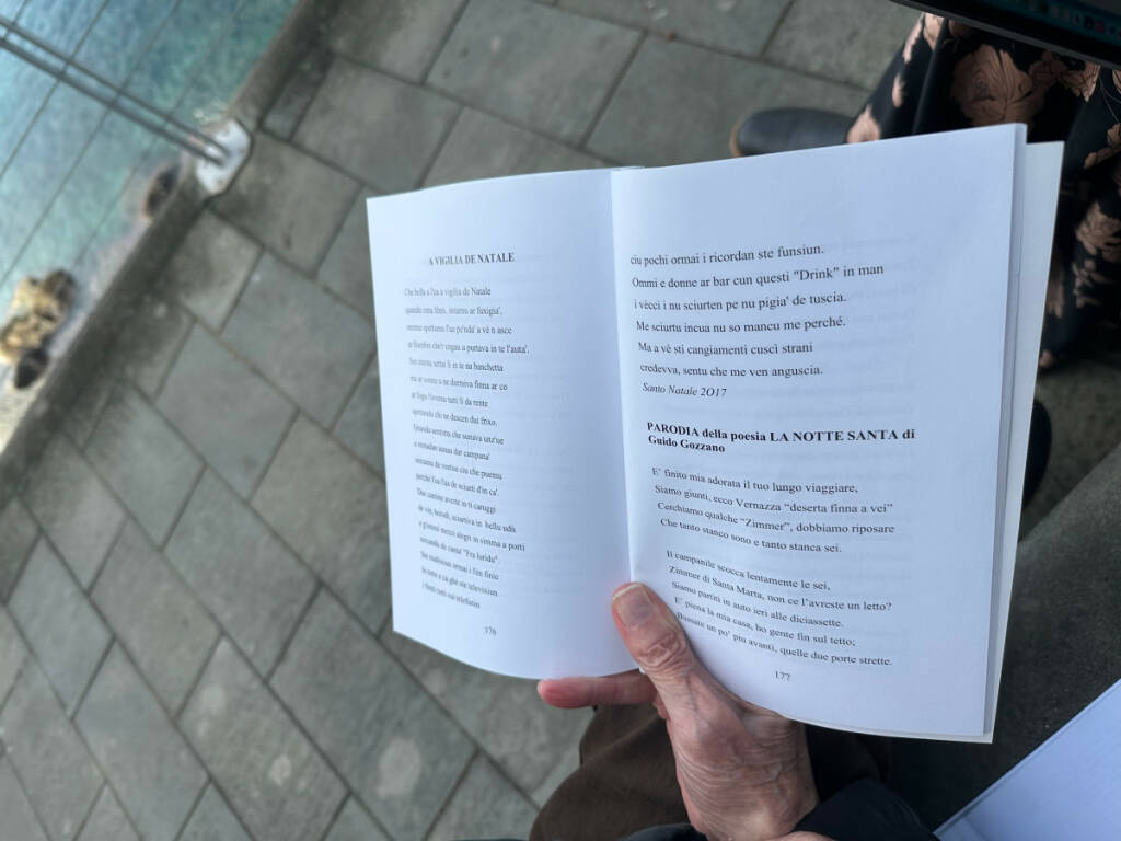 “Di più! Ho fatto una parodia della Notte Santa di Guido Gozzano. Prendo in giro i tempi in cui le donne di Vernazza andavano in stazione a cercare i turisti. Allora non si diceva ‘room’, come adesso. Allora si diceva ‘Zimmer’, ché i ‘foresti’ che capitavano qui erano tedeschi. In questa poesia ho immaginato l’arrivo di Maria e Giuseppe a in una Vernazza deserta, come si presenta a dicembre. C’è il ritornello del campanile che scocca l’ora, mentre la coppia cerca un letto, un ballatoio, un sottoscala, una cantina, insomma, di Zimmer in Zimmer, un luogo per riposare. Finché arrivano le undici.