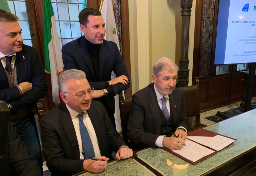 La chiave per finanziare l’opera è rappresentata dall’inserimento del cosiddetto “allegato L“ collegato al rinnovo della concessione dell’autostrada A12 a favore di Concessioni del Tirreno. In quella sede furono individuati alcuni interventi ritenuti prioritari tra cui, per il territorio spezzino, in primis la viabilità della piana. ”Quando questo fu fatto non c’era neanche il ponte, ma oggi possiamo dire che fu un’opera di lungimiranza – rivendica l’assessore regionale Giacomo Giampedrone -. Il patto siglato oggi è figlio di una volontà costruita allora. Un bel modo di lavorare direi. Nei prossimi anni avremo altre risorse da spendere sia a ponente che a levante”.